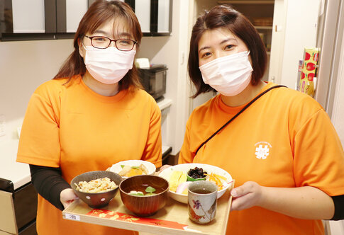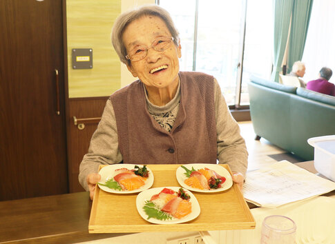 昼食は、おせち料理を提供し、「わぁ、綺麗、美味しそう!おせちが食べれるなんて思ってもいなかったから嬉しい」と喜んで下さり、笑顔で召し上がられていました。