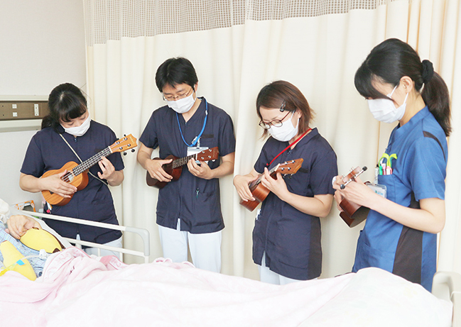 当院の職員で結成している「ウクレレ同好会」。
