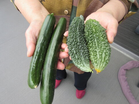 2021年7月31日(土)にリハビリテーションセンター裏の畑で患者さんと夏野菜の収穫を行いました。