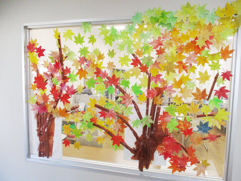 芸術の秋ということもありリハビリテーション科ではリハビリの一環として秋の壁画作製に取り組みました。