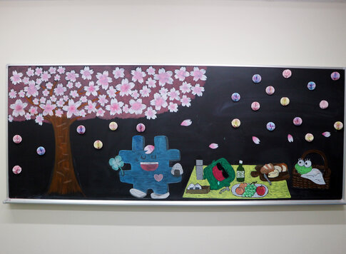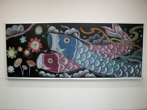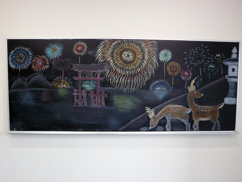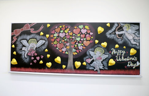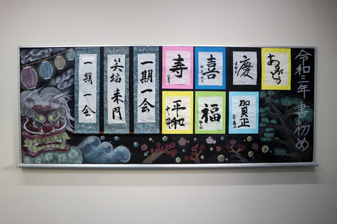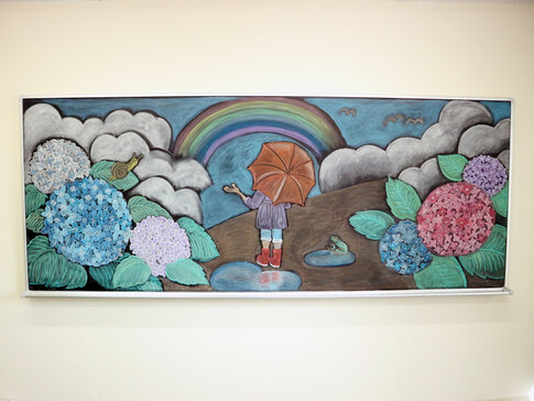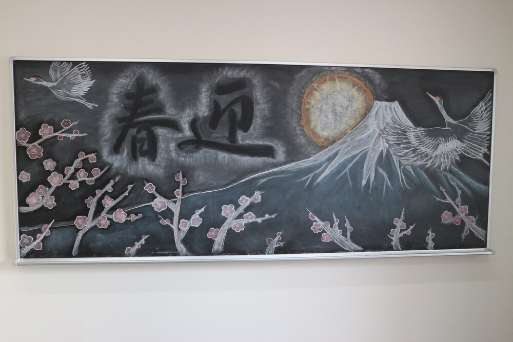 今年のお正月から広報部で当院のリハビリ棟につながる渡り廊下に設置している黒板にチョークアートをしており、今年最後の黒板アートが完成いたしました!
