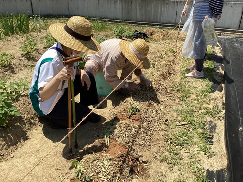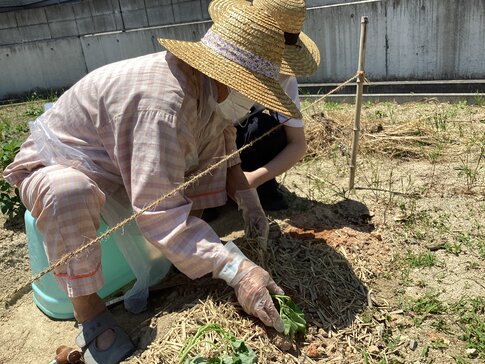 以前、当院に入院されていた患者さんがさついまいもの苗を持ってきてくださり、その苗をみんなで植えました。