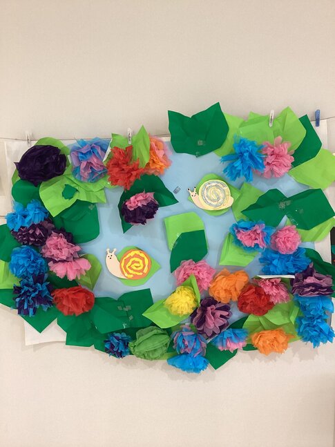 今月は「梅雨」をイメージし、紫陽花やカタツムリ作りに制作していただきました。